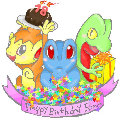 ワニノコから抱えきれない花と、ヒコザルからは食べ損ねた(?)チョコレートケーキと、キモリからはきっと枕が入ってるであろうプレゼントを差し上げます