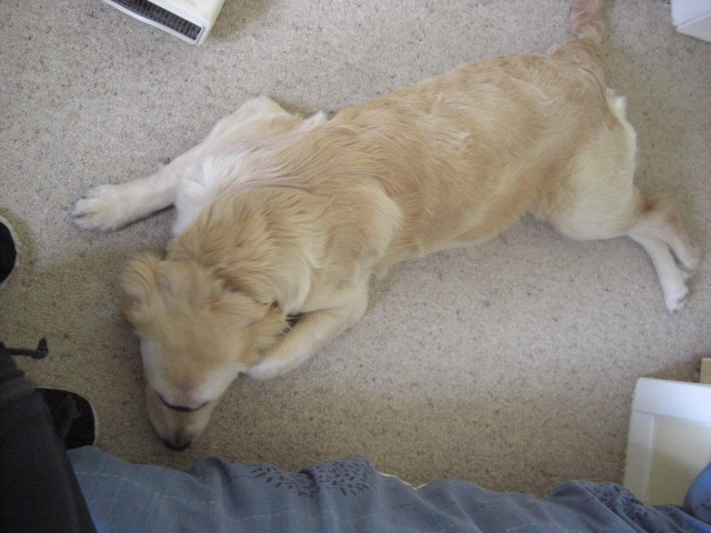 来たのがね、12時くらいで、聡士寝起き30分で生後5ヶ月のゴールデンレトリバーに襲われました←